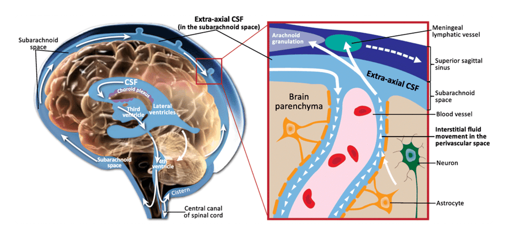 뇌척수액이 정체 되거나 압력이 높아지면 뇌의 혈류는 제한되고, 치매의 원인이 되는 베타 아밀로이드등의 노폐물이 쌓이며, 뉴런과 신경아교세포를 취약하게 만듭니다.